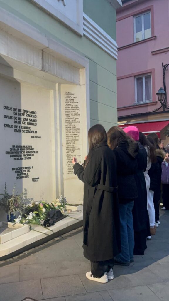 Potom su nasi učenici, u pratnji profesorice Dee Palić i odgajateljice Evele Kreštić, pošli na put. Prvo su posjetili Tuzlu, gdje su obišli Tuzlansku kapiju – mjesto prekinute mladost; mjesto koje vječno svjedoči o izgubljenim mladim životima i nevinim žrtvama.