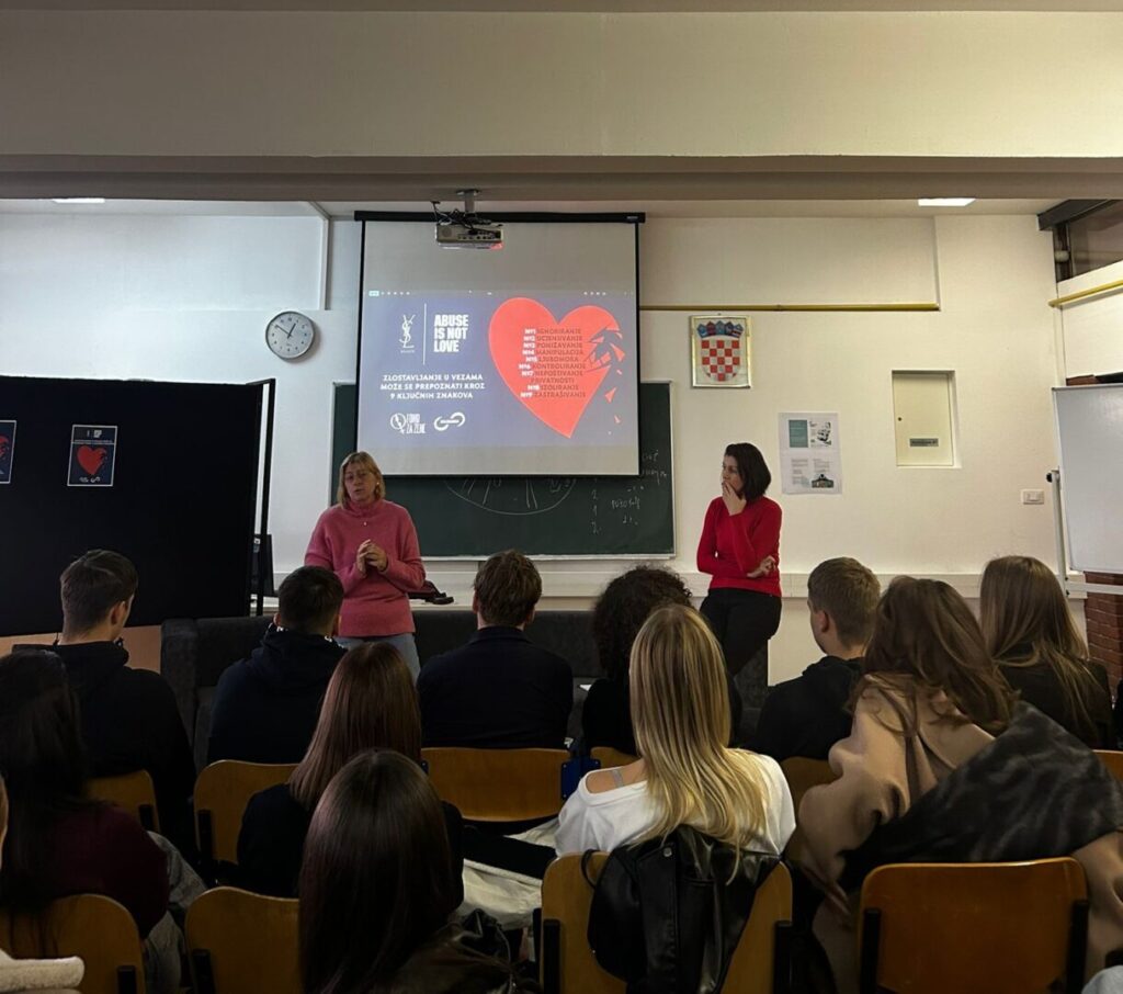 Predavanje pod nazivom „Abuse is not love” vodila je prof. Anita Lauri Koralija, profesorica psihologije na Filozofskom fakultetu, u suradnji s udrugom Solidarna, koju je predstavljala Karla Pudar. Konkretnim primjerima i jednostavnim objašnjenjima upoznale su nas s time kako prepoznati nasilne i manipulativne obrasce ponašanja u vezama.