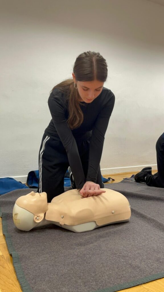 Tijekom obuke slušali smo teorijska predavanja, ali sudjelovali smo i u praktičnom dijelu, čime smo prošli napredni stupanj obuke prve pomoći.