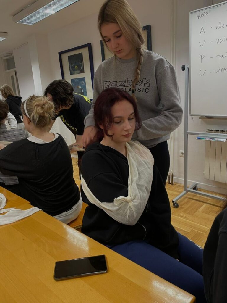 Naučili smo mnoge korisne vještine poput stavljanja unesrećenog u bočni položaj, provođenja reanimacije, previjanja rana, zaustavljanja krvarenja i drugih postupaka prve pomoći.